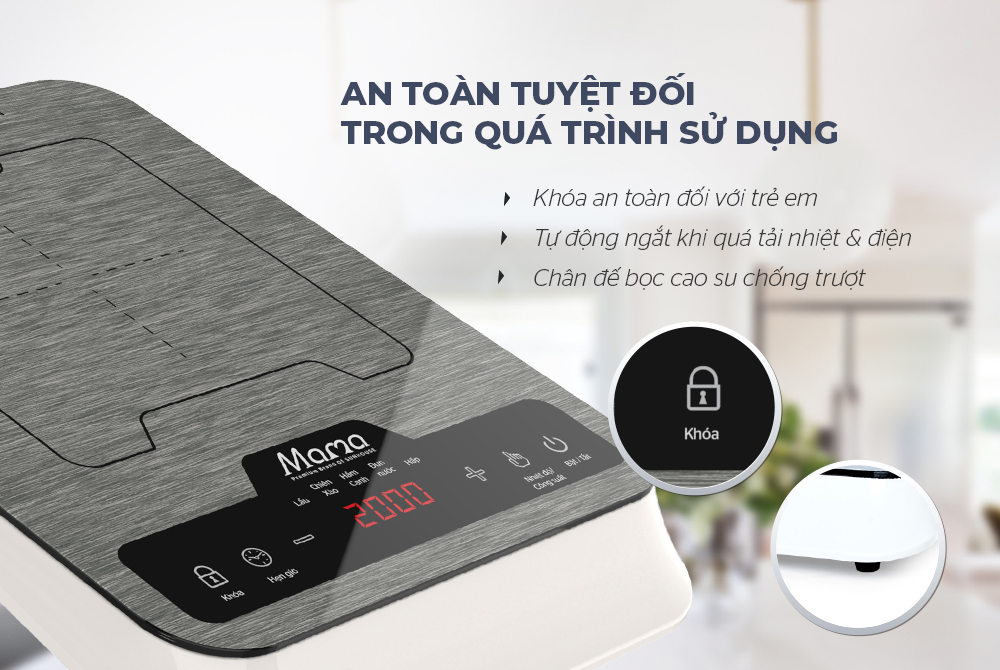 Ngoài ra, bếp trang bị thiết bị bảo vệ khi dòng điện bị quá tải. Khi nồi quá nóng, bếp sẽ tự động tắt, còi báo. Bạn chỉ cần chờ vài phút để bếp nguội sau đó bật bếp lên và sử dụng bình thường.