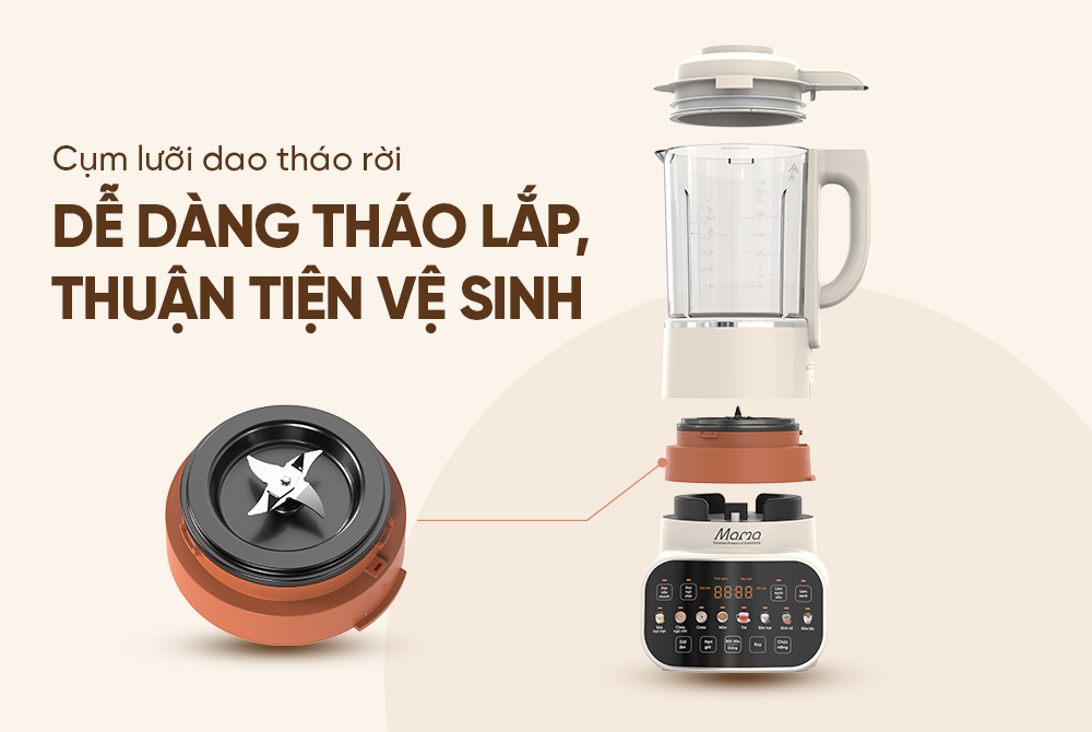 Máy làm sữa hạt đa năng SUNHOUSE MAMA SHD5268 được thiết kế cụm lưỡi dao tháo rời, giúp việc vệ sinh sau mỗi lần sử dụng trở nên dễ dàng và an toàn hơn, tránh thao tác sâu bên trong cối xay.