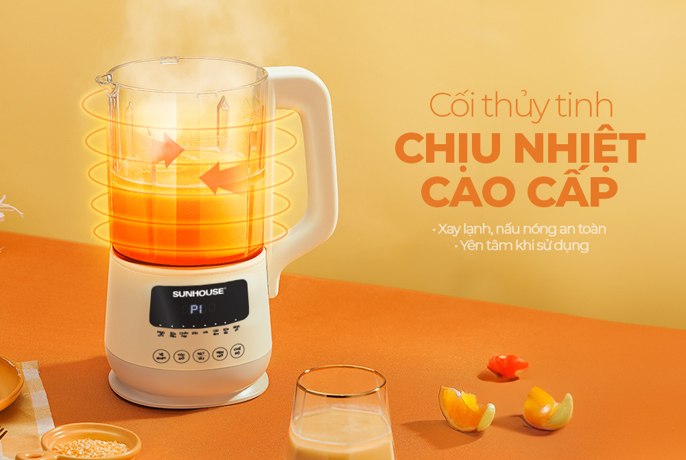 Ngoài ra, với chất liệu thủy tinh cao cấp, sản phẩm có khả năng chịu nhiệt tốt nên bạn có thể hoàn toàn yên tâm khi xay các nguyên liệu lạnh hay nấu ở nhiệt độ cao.
