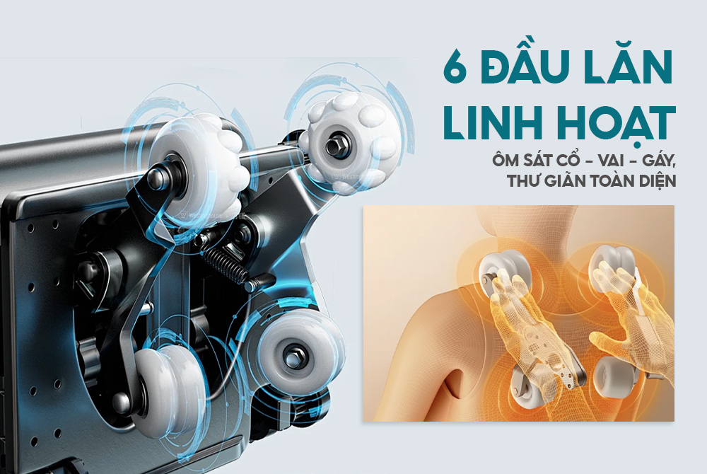 6 đầu lăn linh hoạt - Ôm sát cổ vai gáy