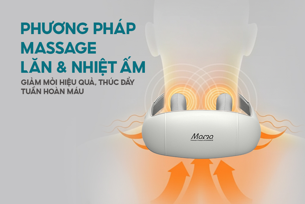 Máy massage cổ vai gáy SUNHOUSE MAMA SHD3526 ứng dụng kỹ thuật massage lăn nhịp nhàng kết hợp cùng chức năng làm ấm dịu nhẹ mang đến trải nghiệm thư giãn sâu và dễ chịu. Với dải nhiệt linh hoạt 42-50℃, người dùng có thể tùy chọn mức độ làm ấm phù hợp với nhiệt độ cơ thể và nhu cầu thư giãn cá nhân. Khi kết hợp massage cùng nhiệt ấm, sản phẩm giúp cơ bắp được làm mềm nhanh chóng, thúc đẩy lưu thông máu và giảm mỏi hiệu quả.