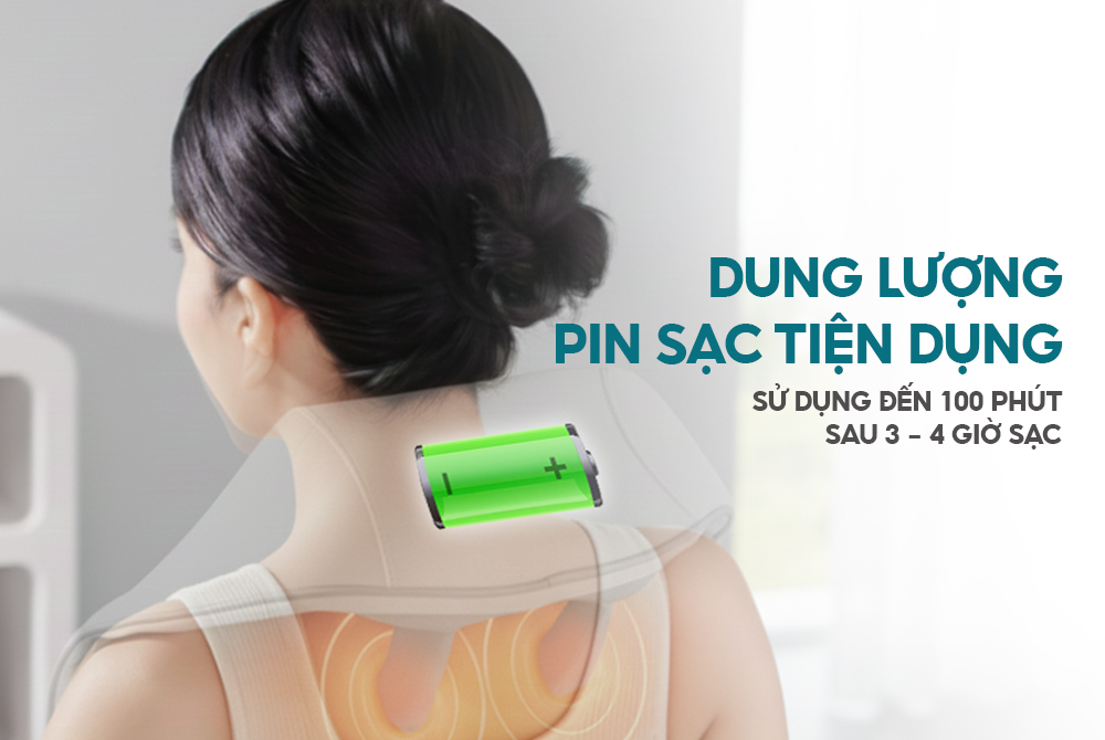 Máy massage cổ vai gáy SUNHOUSE MAMA SHD3526 được trang bị pin Lithium dung lượng 2200mAh cho khả năng hoạt động ổn định và bền bỉ. Chỉ với 3,5 - 4 giờ sạc đầy, sản ph có thể vận hành liên tục từ 80 – 100 phút, đáp ứng nhu cầu thư giãn trọn vẹn mỗi ngày mà không lo gián đoạn giữa chừng.