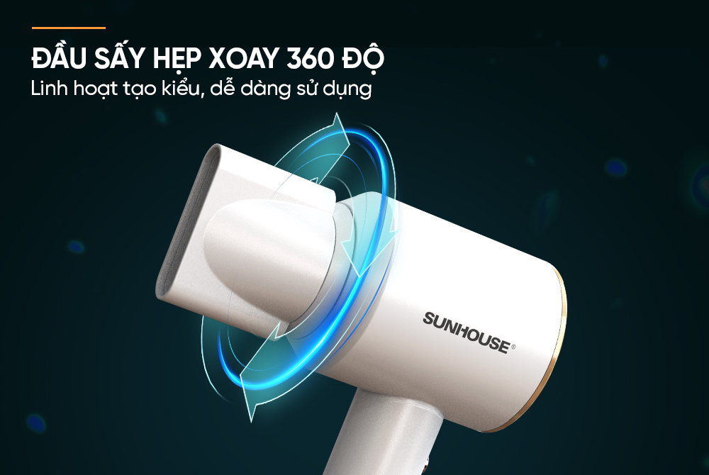 • Đầu sấy xoay 360 độ, linh hoạt mọi góc sấy