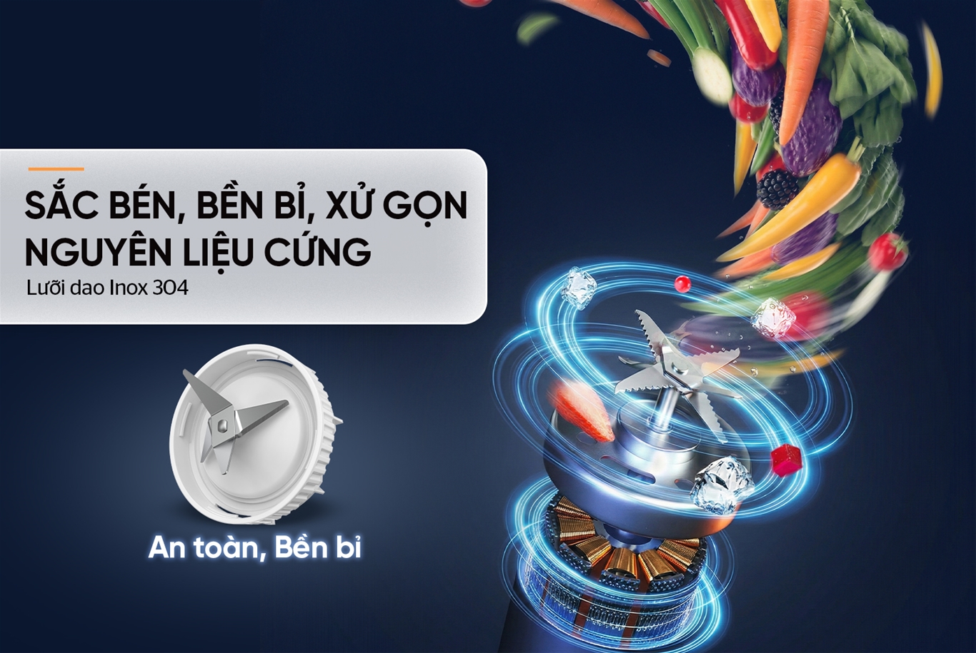 • Lưỡi dao Inox 304 bền bỉ, an toàn cho sức khỏe