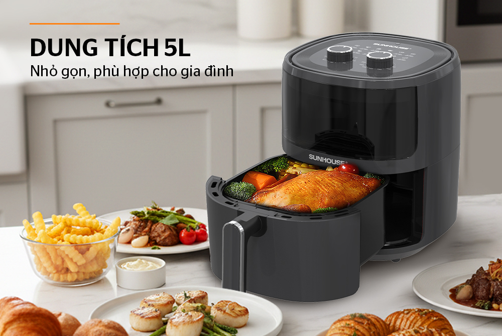 Nồi chiên không dầu Sunhouse mang đến giải pháp nấu ăn nhanh gọn, an toàn và tốt cho sức khỏe với khả năng giảm dầu mỡ đáng kể. Nồi chiên không dầu 5L Sunhouse SHD4021 sở hữu dung tích nhỏ gọn, công nghệ làm nóng hiện đại cùng loạt tính năng tiện lợi, phục vụ đa dạng món chiên, nướng, quay cho cả gia đình. Thiết kế hiện đại, dễ sử dụng và tiết kiệm thời gian, phù hợp với mọi căn bếp Việt.