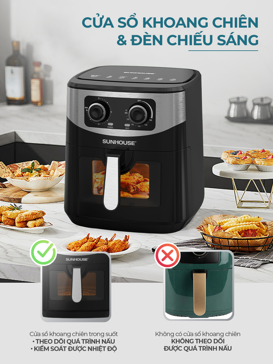 Nồi chiên không dầu 10.5L SUNHOUSE SHD4038 là lựa chọn hoàn hảo cho căn bếp của mỗi gia đình Việt, giúp việc nấu nướng của bạn trở nên dễ dàng và tiết kiệm thời gian hơn cùng Dung tích khủng lớn lên tới 10.5L kết hợp công nghệ nướng Rapid Air 360, SHD4038 dễ dàng cân đủ món - nấu đủ mâm, chiên rán gà, vịt, cá nguyên con không cần đảo lật, mang đến những món ăn thơm ngon và an toàn sức khỏe.