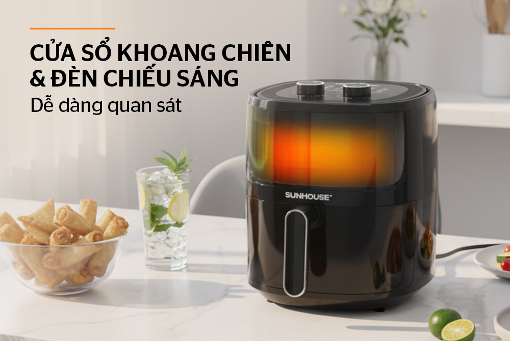 • Cửa sổ khoang chiên & đèn chiếu sáng, dễ dàng quan sát
