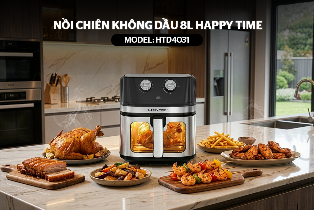 Dung tích khoang chiên lên đến 8L cho phép chế biến lượng thực phẩm lớn chỉ trong một lần nấu. Người dùng có thể nướng gà, vịt nguyên con hoặc chuẩn bị khẩu phần cho nhiều thành viên trong gia đình, đặc biệt phù hợp cho những bữa ăn đông người hay dịp tụ họp.