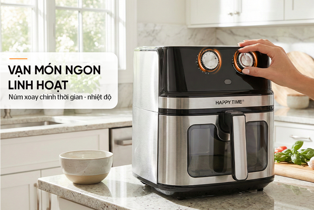 Nồi chiên không dầu 8L SUNHOUSE HTD4031 được trang bị hai núm xoay cơ học dễ sử dụng, cho phép điều chỉnh linh hoạt nhiệt độ và thời gian theo từng loại thực phẩm. Chỉ với vài thao tác đơn giản, người dùng có thể chế biến nhiều món từ chiên, nướng đến hâm nóng nhanh chóng và thuận tiện.