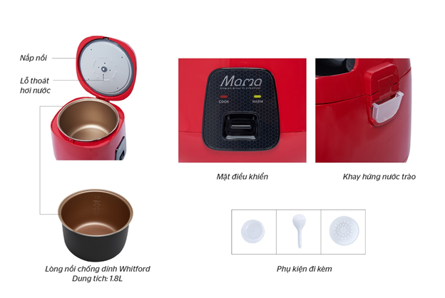 Dung tích 1.8L phù hợp với gia đình 4 – 6 người. Kết hợp xửng hấp đi kèm, bạn có thể chế biến nhiều món ngon khác cho gia đình như đồ xôi, hấp bánh, luộc củ quả…