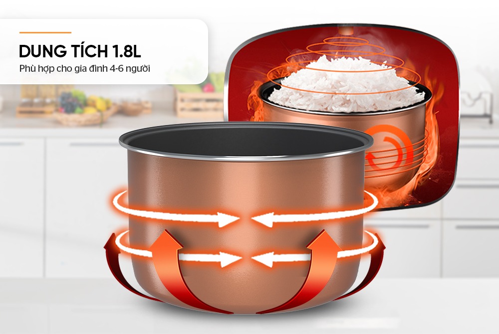 • Mâm nhiệt lớn, tỏa nhiệt đều cho cơm dẻo ngon