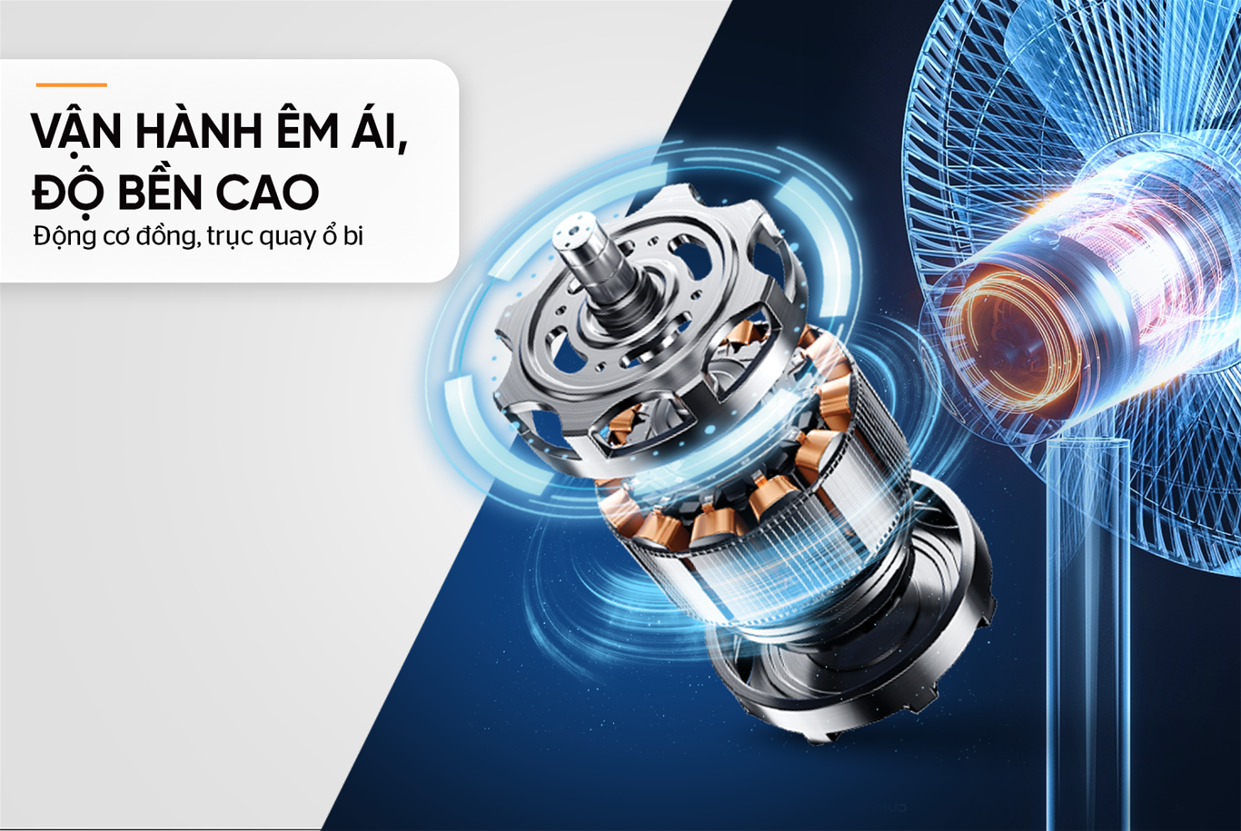 Động cơ đồng, trục quay ổ bi - Vận hành êm ái, độ bền cao