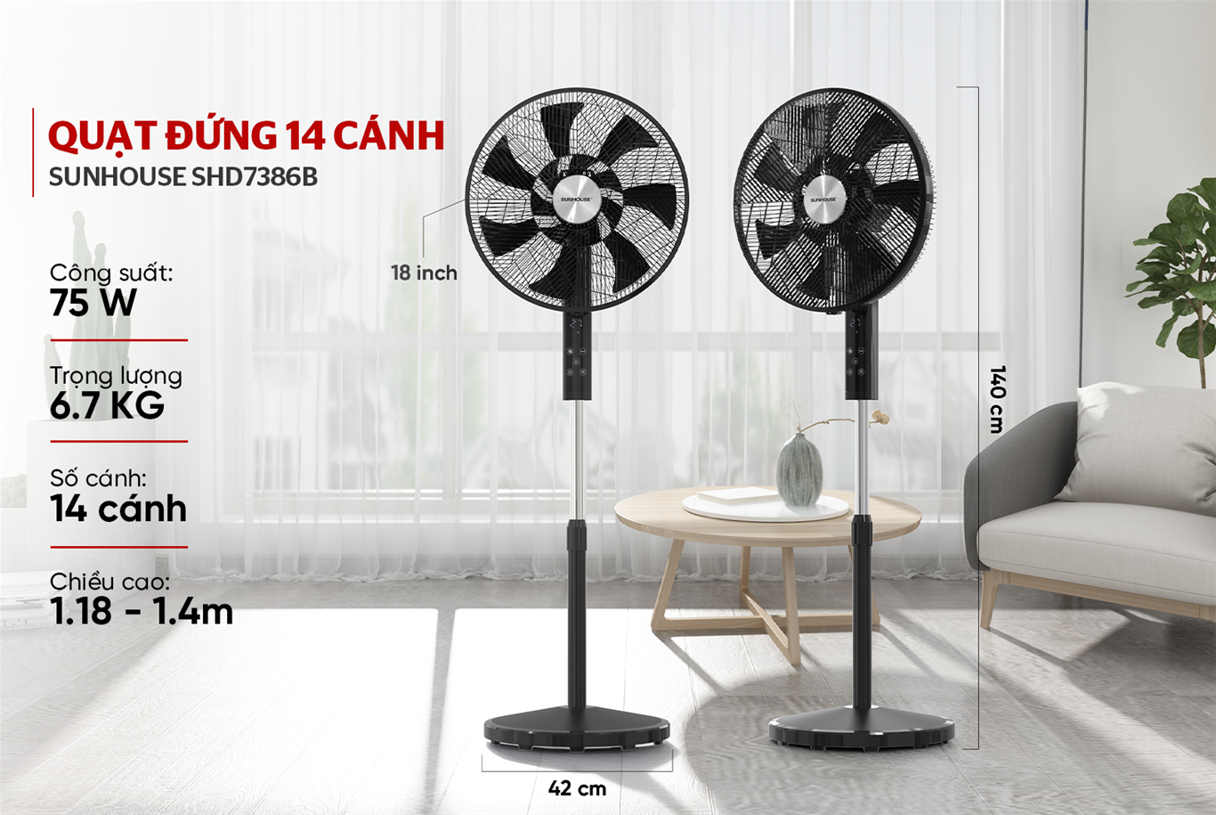 QUẠT ĐỨNG 14 CÁNH SUNHOUSE SHD7386B