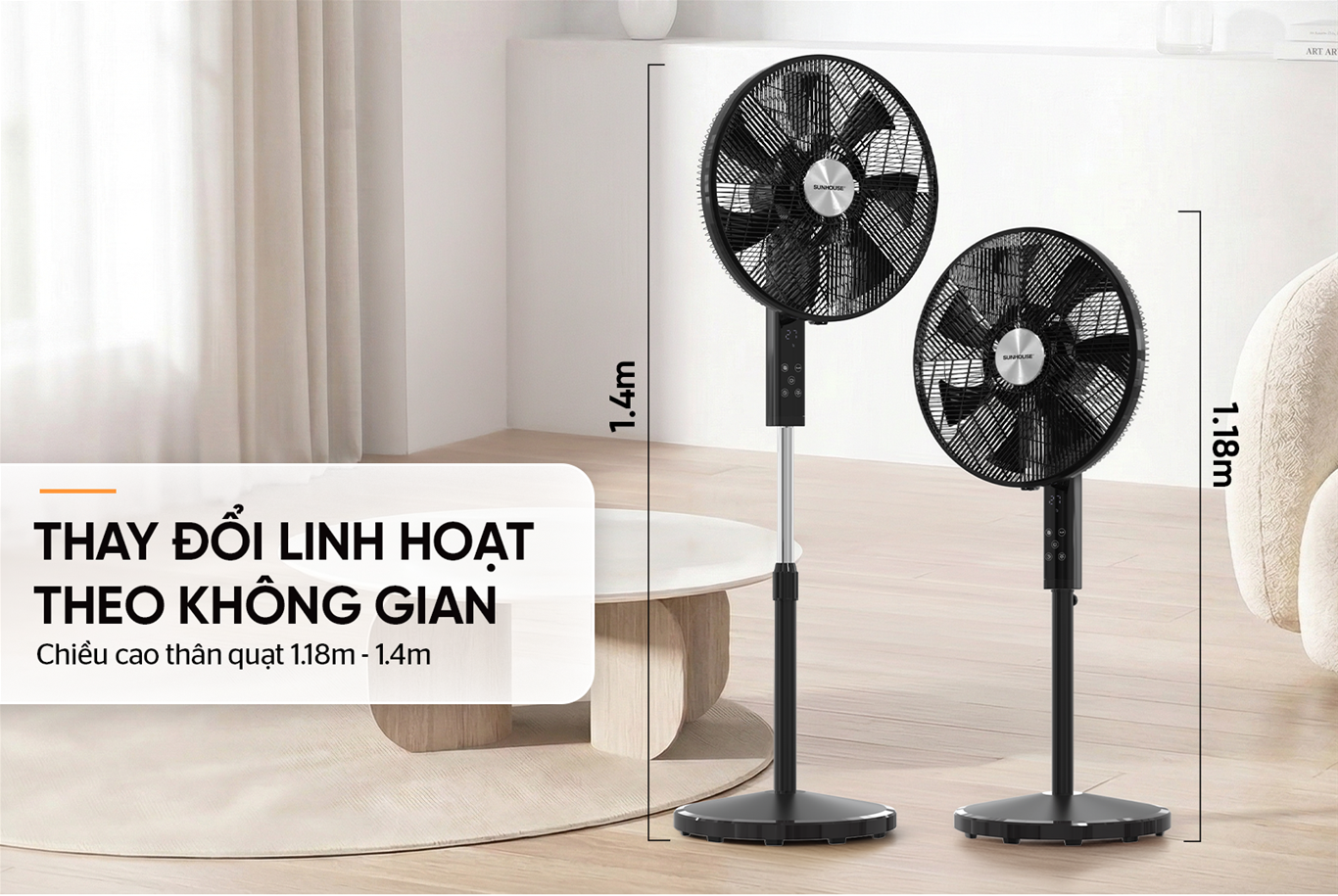 • Chiều cao thân quạt linh hoạt 1.18m - 1.4m