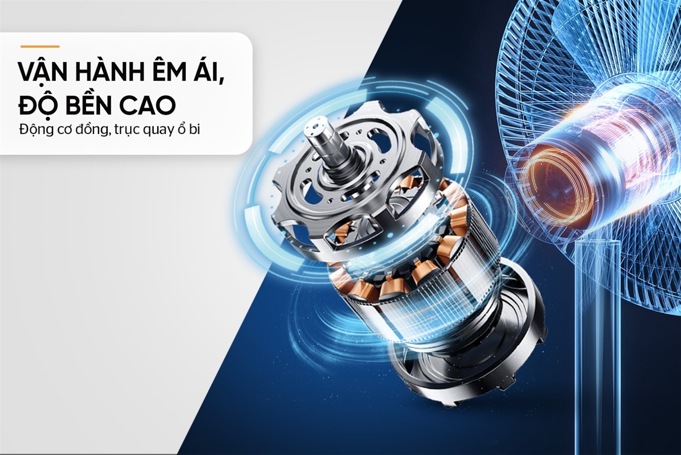 • Động cơ đồng, trục quay ổ bi, vận hành êm ái