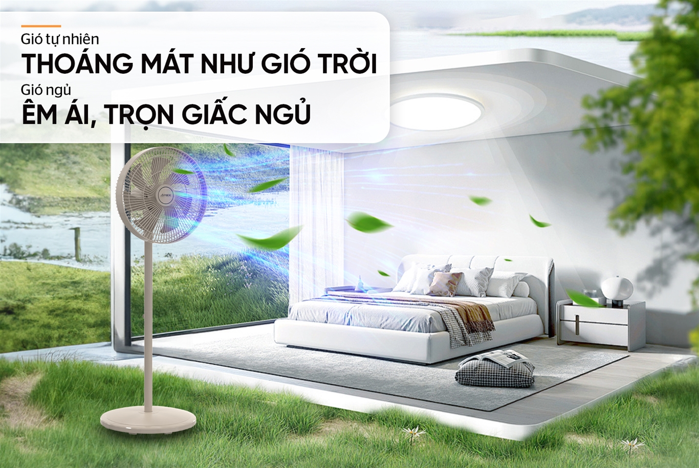 Chế độ gió ngủ tạo làn gió dịu êm và tự động giảm dần theo nhịp sinh học khi cơ thể bước vào trạng thái ngủ sâu. Khi thân nhiệt giảm về đêm, quạt sẽ điều chỉnh tốc độ phù hợp, giúp hạn chế cảm giác lạnh buốt hoặc khô họng do gió thổi mạnh liên tục, từ đó bảo vệ sức khỏe và mang lại giấc ngủ trọn vẹn hơn.