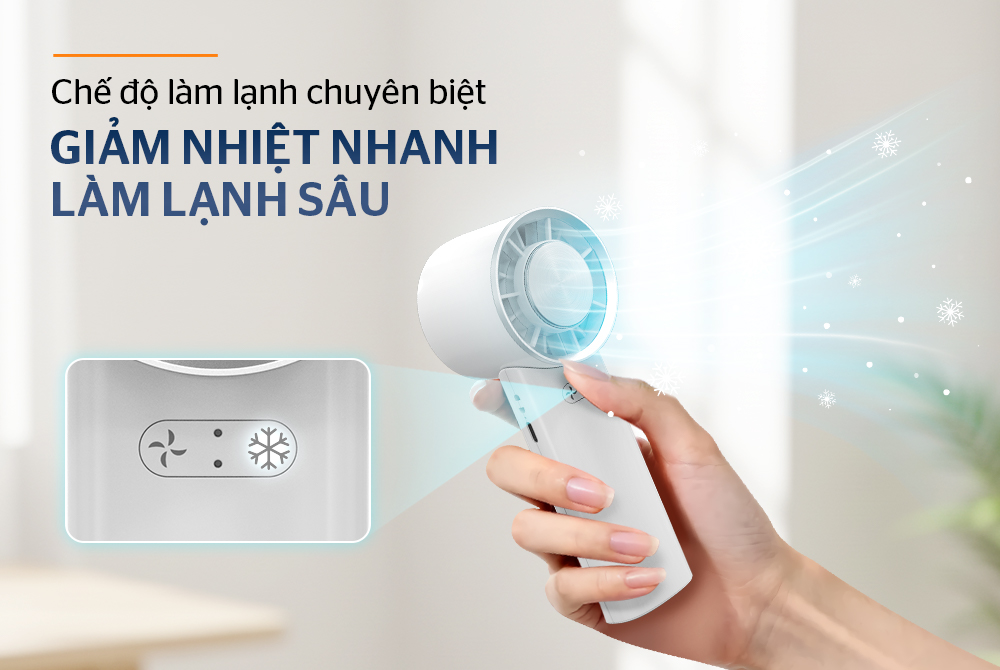 Chế độ làm lạnh chuyên biệt của quạt sạc mini cầm tay SUNHOUSE SHD7113 cho phép kích hoạt đồng thời với cả 3 mức gió, giúp giảm nhiệt nhanh và làm mát sâu tức thì khi cần hạ nhiệt cấp tốc. Khi kết hợp cùng quạt, luồng gió mát được tăng cường hiệu quả, mang lại cảm giác dễ chịu rõ rệt trong thời gian ngắn. Thời gian sử dụng linh hoạt theo từng mức gió: Mức 1 lên đến 70 phút, mức 2 khoảng 60 phút và mức 3 khoảng 40 phút, phù hợp cho nhiều nhu cầu làm mát khác nhau.