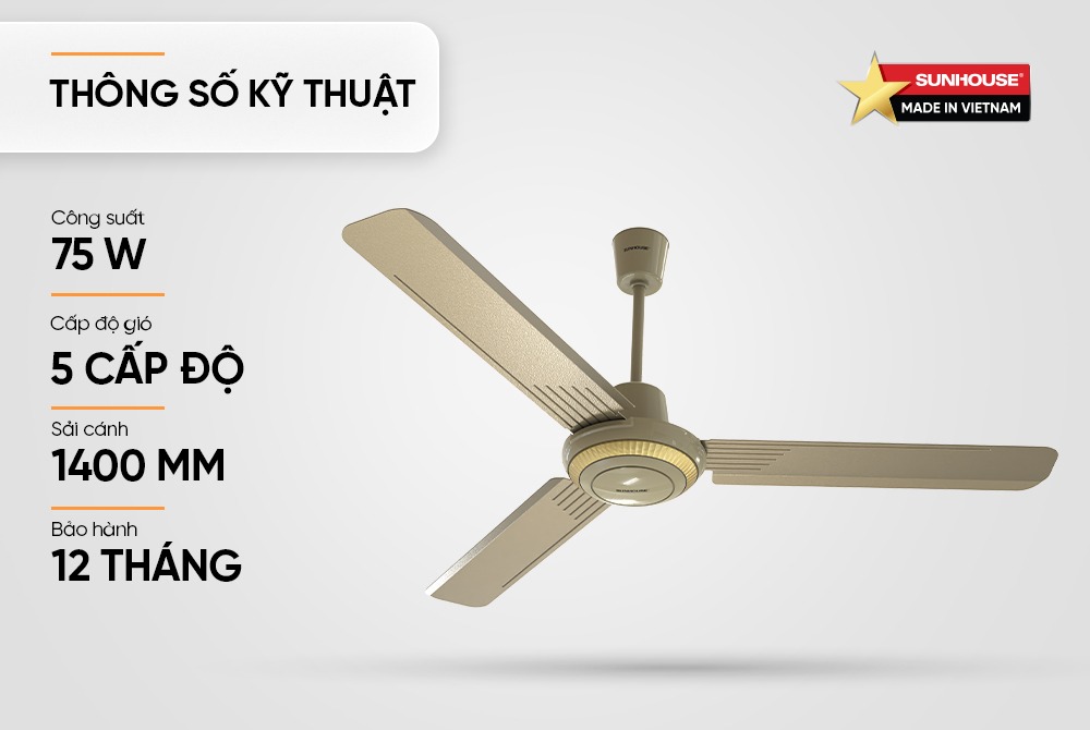 QUẠT TRẦN 3 CÁNH SUNHOUSE SHD7659GR