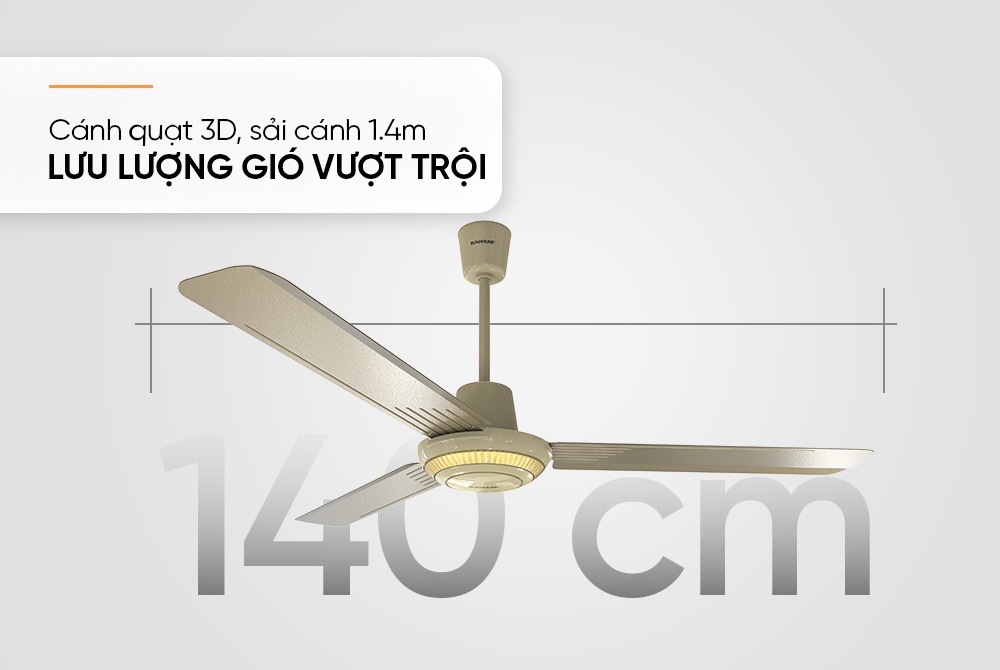 • Đường kính sải cánh 1.4m, lưu lượng gió mạnh và mát trải rộng