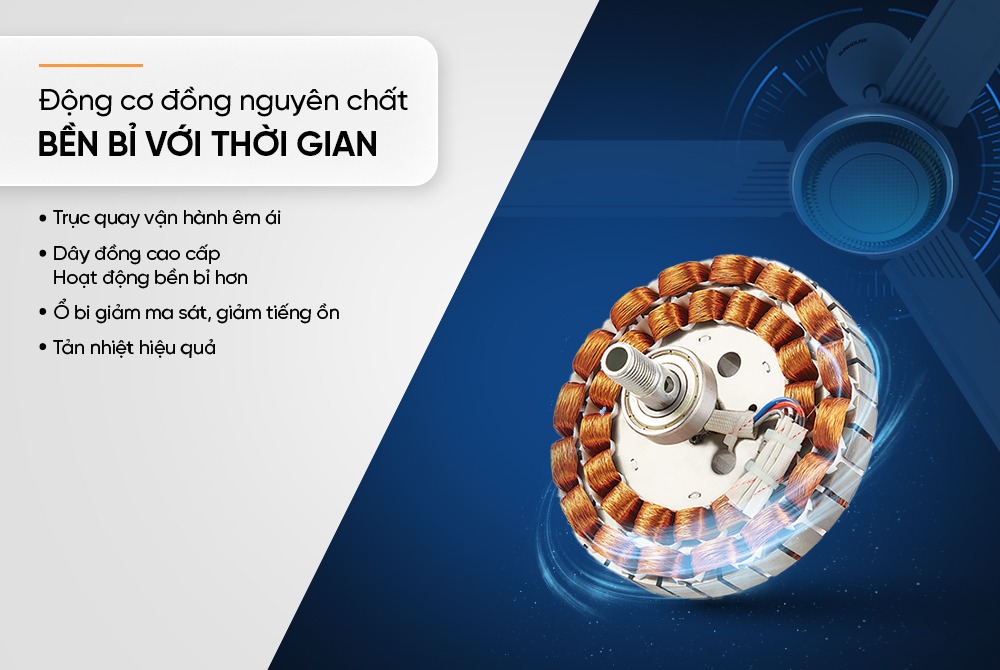 • Trang bị động cơ Đồng - Hiệu suất vượt trội, tiết kiệm điện năng