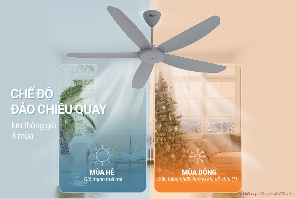 • Chế độ đảo chiều quay, lưu thông gió 4 mùa
