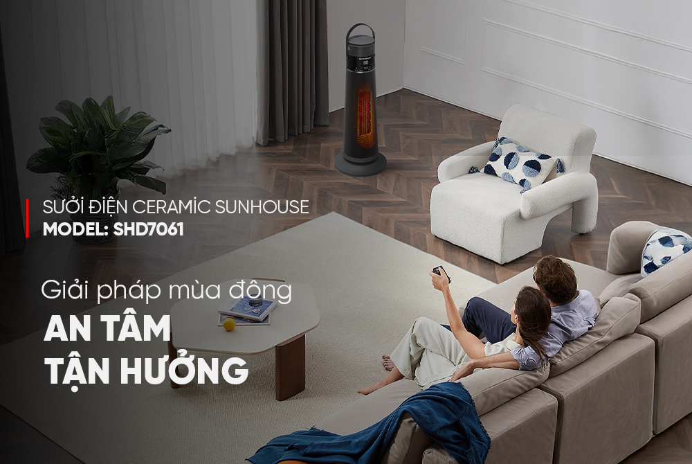 Đi kèm với công nghệ hiện đại là bộ bảo vệ an toàn kép: tự động ngắt khi nghiêng và khi quá nhiệt. Nhờ đó, Sưởi điện Ceramic SUNHOUSE SHD7061 hạn chế tối đa nguy cơ cháy nổ và rủi ro ngoài ý muốn, giúp gia đình an tâm hơn khi sử dụng thường xuyên.