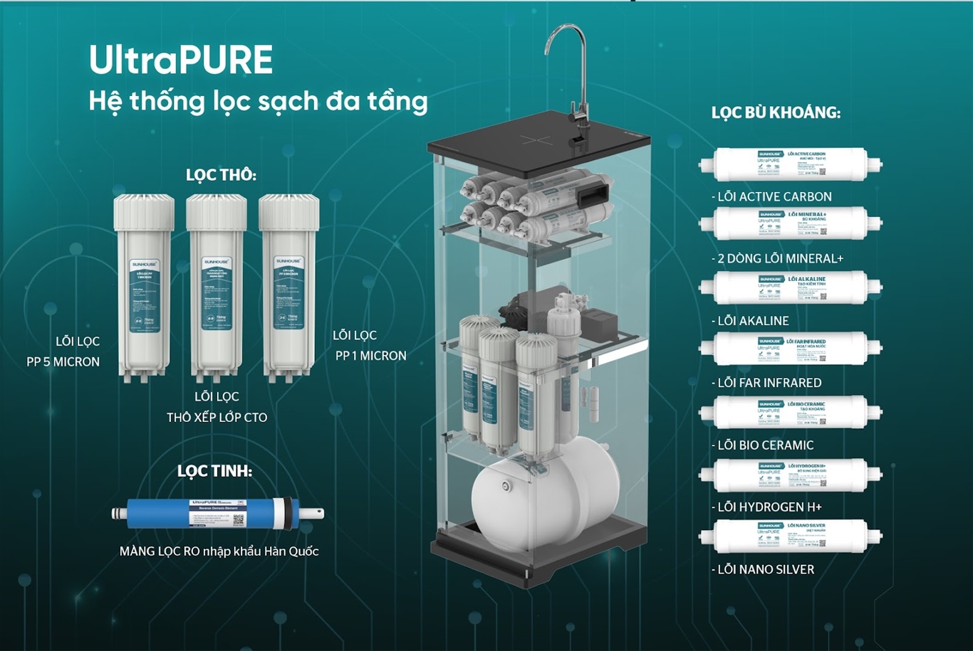 MÁY LỌC NƯỚC RO UltraPURE SUNHOUSE 12 LÕI SHA8896L