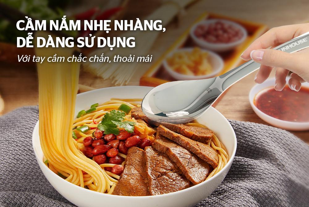Tay cầm của thìa được thiết kế vừa vặn với tay người tiêu dùng, mang lại cảm giác thoải mái và chắc tay, giúp dễ dàng thao tác trong quá trình nấu nướng.
