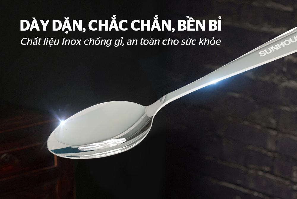 Bộ 2 thìa muỗng trẻ em 140 Inox Sunhouse KS-S2PO140I được làm bằng chất liệu Inox dày dặn, không chỉ đem lại độ bền vượt trội, khả năng chống gỉ tối ưu mà còn đảm bảo an toàn cho bé, không gây ra phản ứng hóa học nào với thực phẩm.
