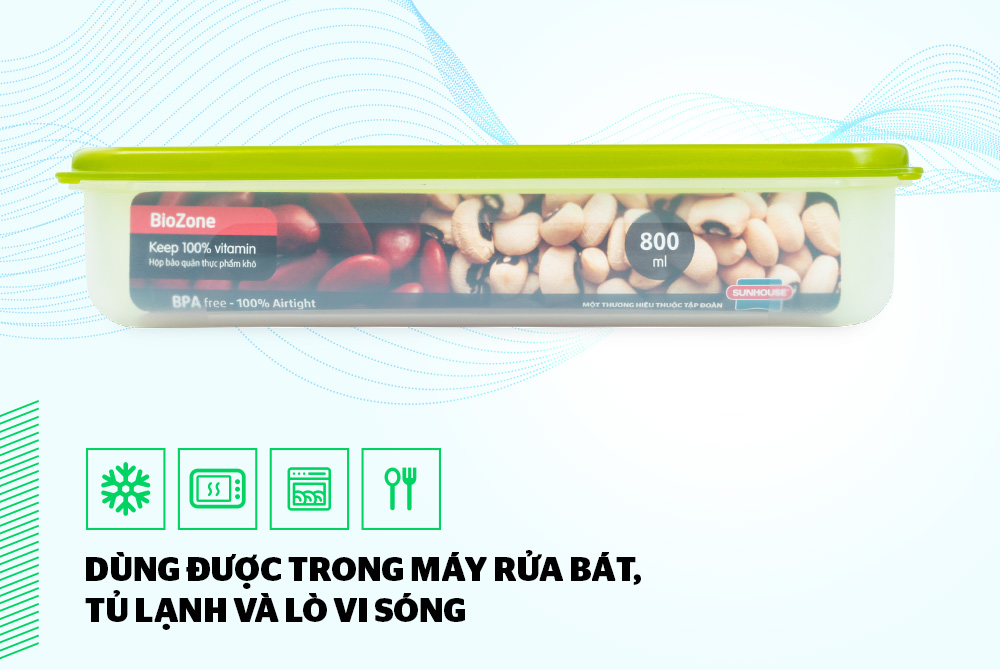 THIẾT KẾ: NGUYÊN LIỆU CAO CẤP – THIẾT KẾ TIỆN DỤNG Nguyên liệu cao cấp, an toàn với sức khỏe Hộp bảo quản thực phẩm khô BioZone 800ml được làm bằng nhựa PP nhập khẩu từ Hàn Quốc. Đây là loại nhựa nguyên sinh cao cấp, chịu lực tốt, chịu nhiệt lên tới 100 độ C, không chứa chất gây ung thư BPA, có độ bền cao, kháng hóa chất và an toàn với sức khỏe.