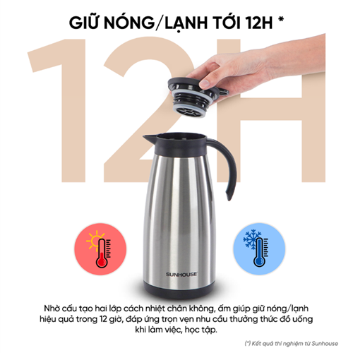 ẤM GIỮ NHIỆT PHA TRÀ 1.4L INOX 304 SUNHOUSE KS-TH1400TI