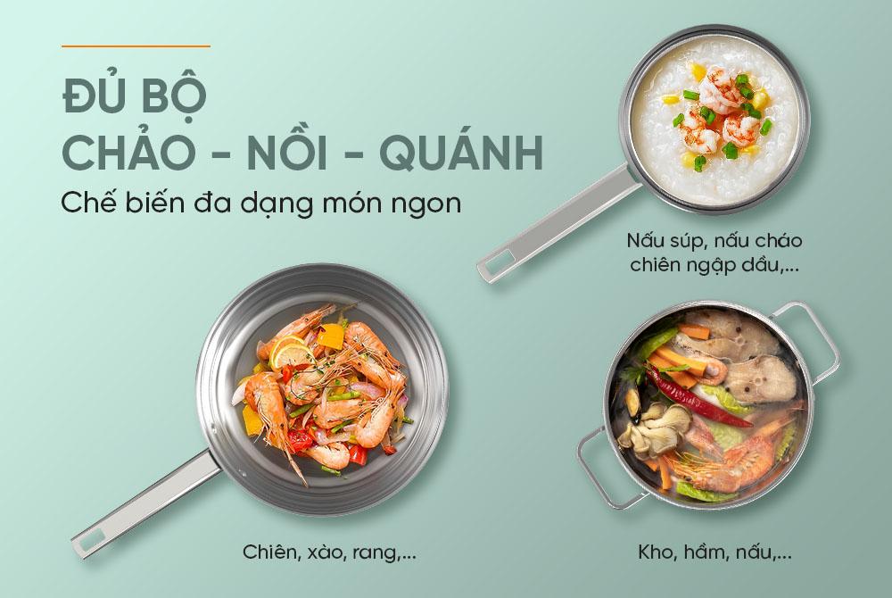 Đủ bộ Nồi - Chảo - Quánh - Chế biến đa dạng món ăn