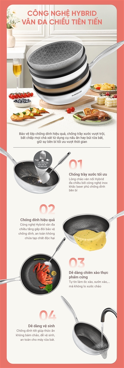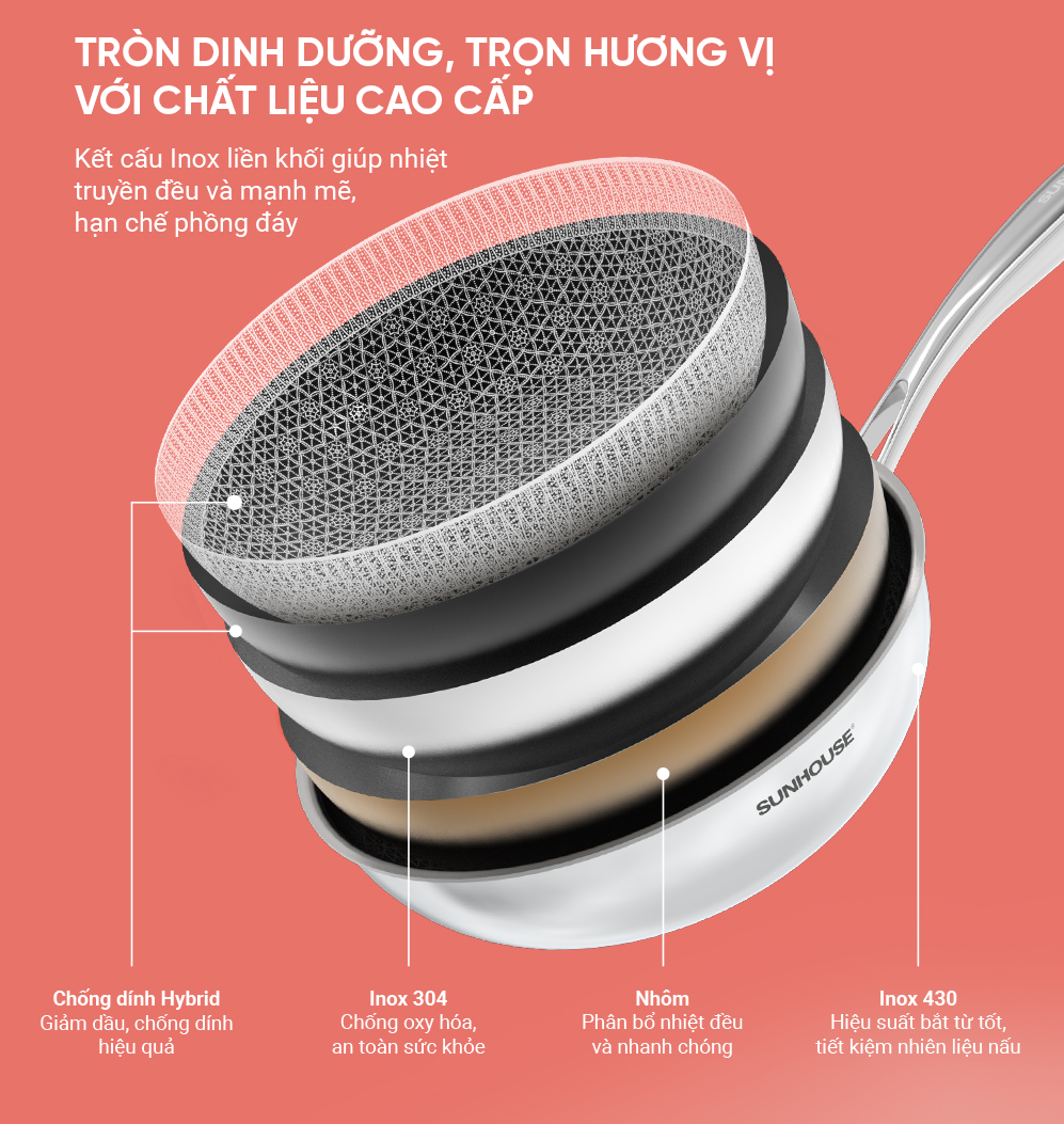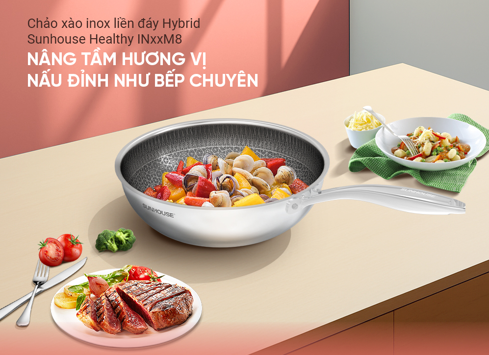 CHẢO XÀO INOX LIỀN ĐÁY HYBRID SUNHOUSE HEALTHY IN28M8