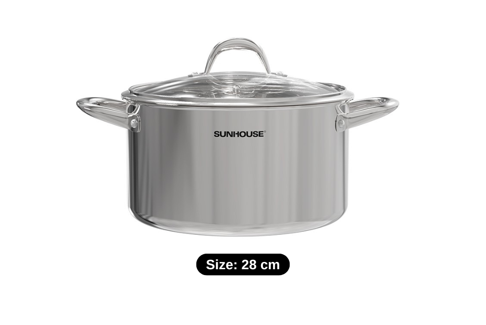 NỒI INOX304 ĐÁY LIỀN SUNHOUSE SHG706-xx nổi bật với kết cấu đa lớp liền khối, chống phồng đáy đảm bảo độ bền bỉ trong quá trình đun nấu. Bên cạnh đó, là khả năng truyền nhiệt và giữ nhiệt hiệu quả, phân bổ nhiệt đồng đều giúp thực phẩm được làm nóng đều, không lo cháy khét. Đáy nồi được cấu thành từ Inox430 với khả năng bắt từ siêu nhạy, dùng cho mọi loại bếp bao gồm cả bếp nhập khẩu.