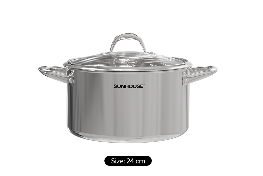 NỒI INOX304 ĐÁY LIỀN SUNHOUSE SHG706-xx nổi bật với kết cấu đa lớp liền khối, chống phồng đáy đảm bảo độ bền bỉ trong quá trình đun nấu. Bên cạnh đó, là khả năng truyền nhiệt và giữ nhiệt hiệu quả, phân bổ nhiệt đồng đều giúp thực phẩm được làm nóng đều, không lo cháy khét. Đáy nồi được cấu thành từ Inox430 với khả năng bắt từ siêu nhạy, dùng cho mọi loại bếp bao gồm cả bếp nhập khẩu.