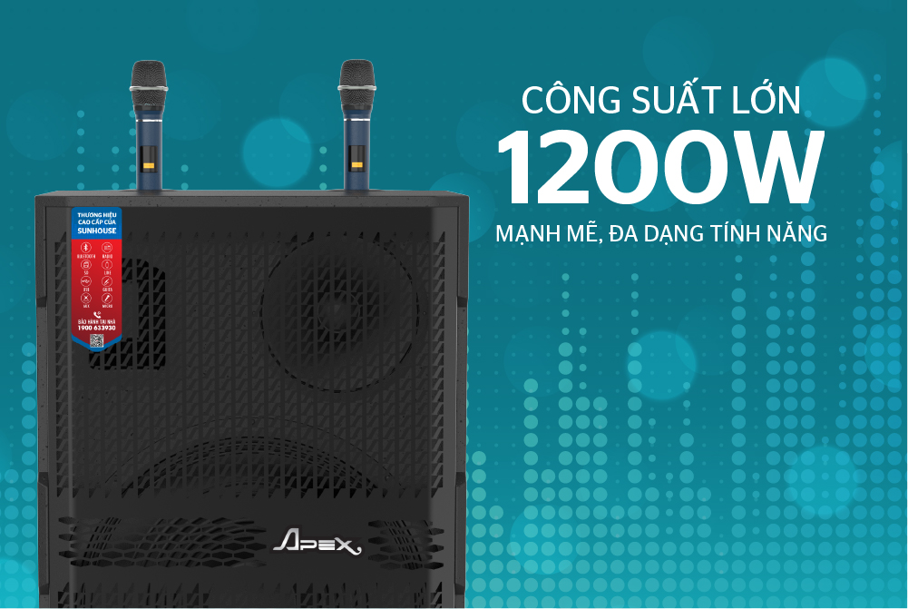 Loa APA3515 có công suất PMPO lên tới 1200W , được trang bị 1 loa Treble, 1 loa Bass 50 và 1 loa Mid mang lại âm thanh trung thực, rõ ràng, sống động. Loa kéo APEX thể hiện rõ từng âm sắc một cách vang dội, mạnh mẽ mà vẫn giữ được chất lượng âm thanh nguyên bản, cho cuộc vui thêm hào hứng, sôi động.