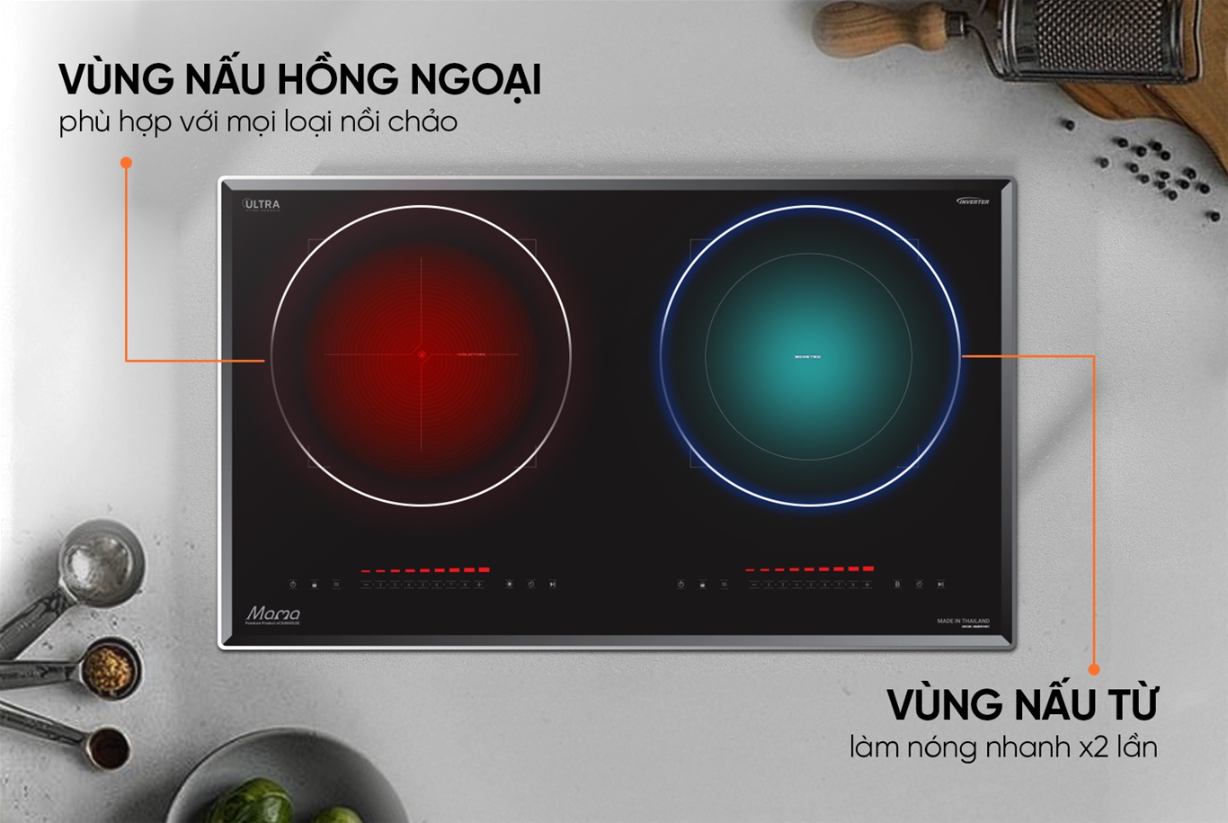 • Hai vùng nấu điện từ và hồng ngoại tiện lợi