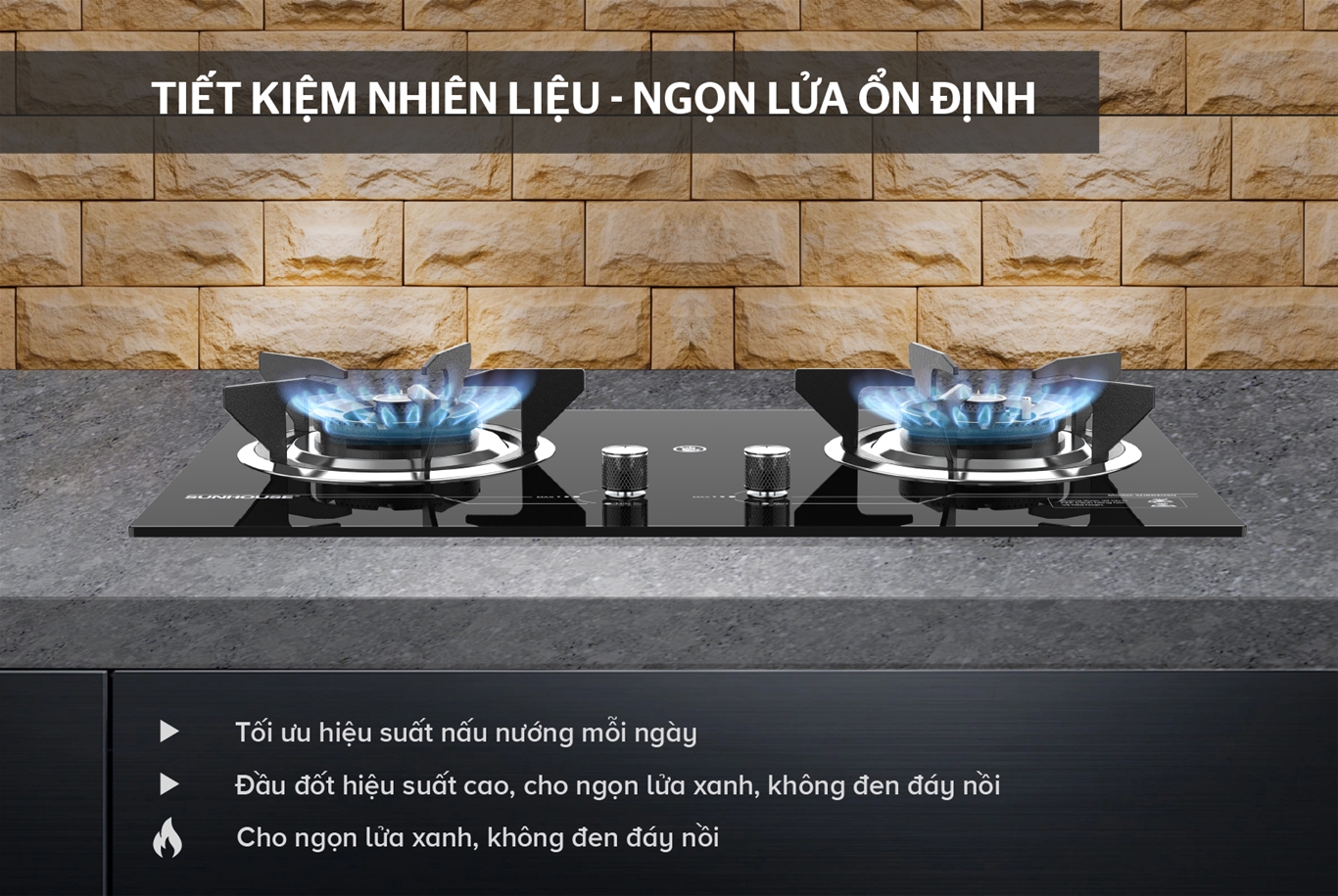 • Đầu đốt cao cấp, không han gỉ, cho ngọn lửa xanh, không đen đáy nồi