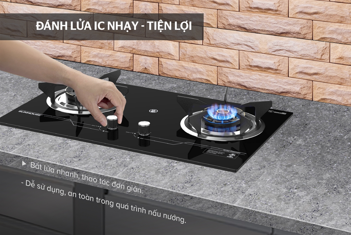 • Hệ thống đánh lửa IC nhạy bén, bật lửa nhanh, an toàn khi sử dụng