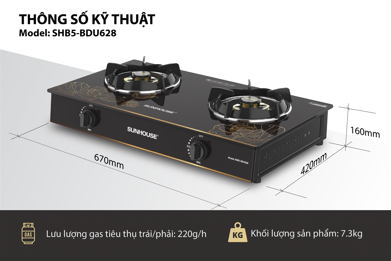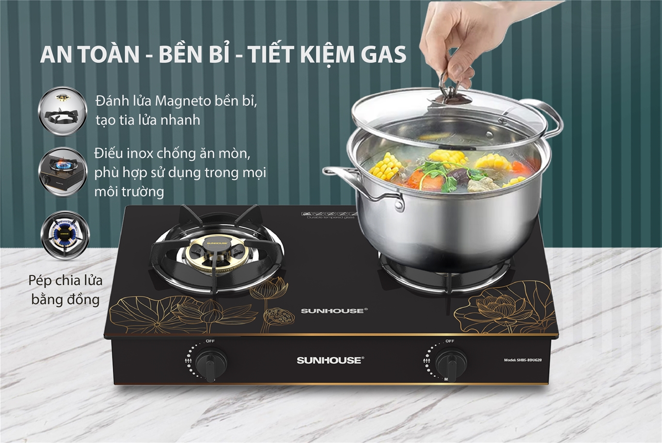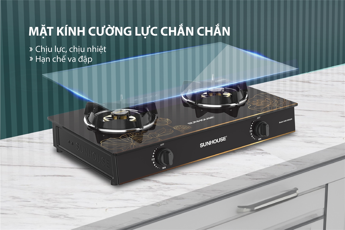 BẾP GAS DƯƠNG KÍNH SUNHOUSE SHB5-BDU628