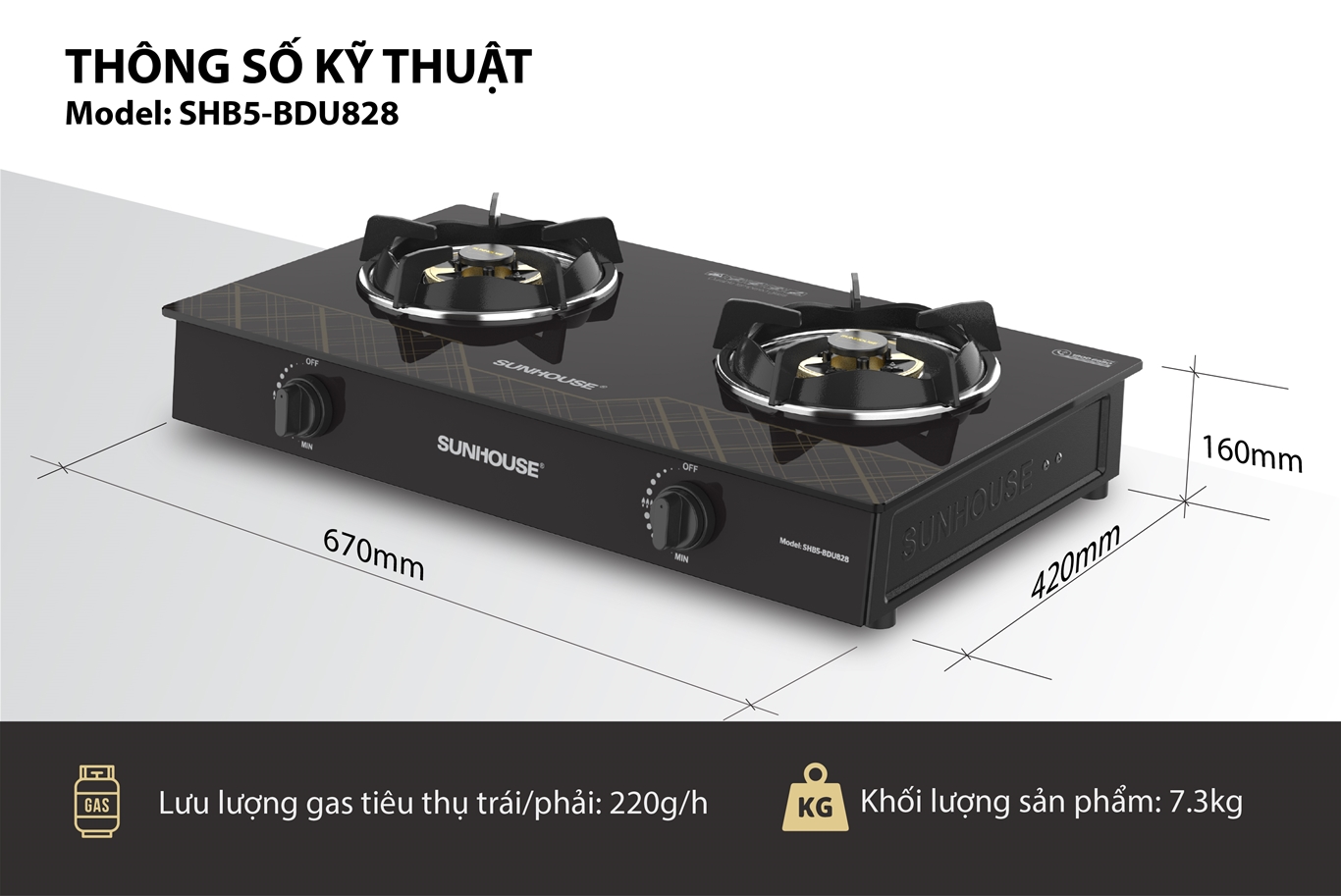 BẾP GAS DƯƠNG KÍNH SUNHOUSE SHB5-BDU828