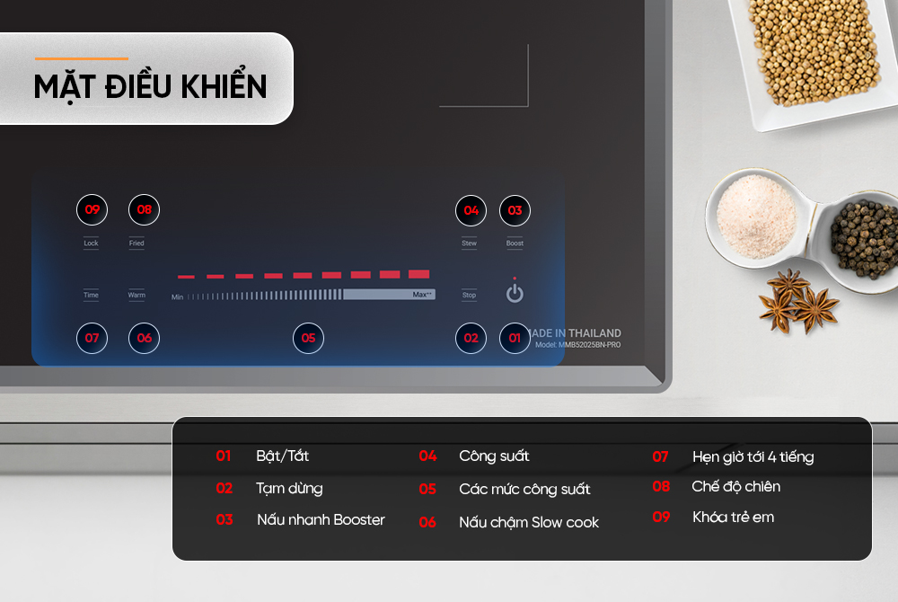 Chế độ Tạm Dừng: Cho phép tạm dừng hoạt động bếp mà vẫn giữ nguyên nhiệt độ và chức năng hiện tại, chỉ cần nhấn nút để tiếp tục nấu như bình thường.