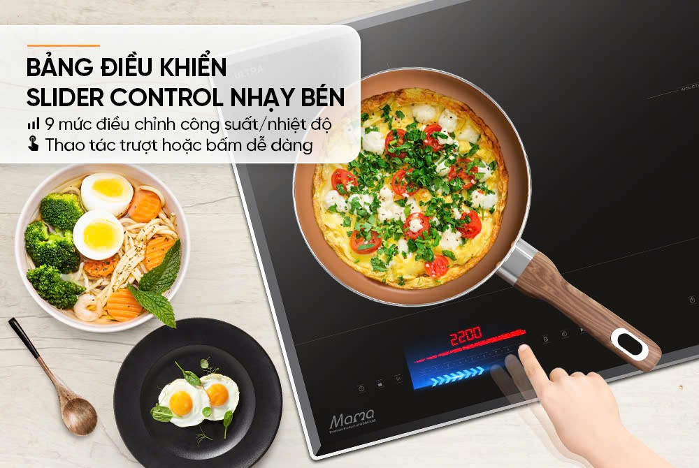 Bếp đôi điện từ Sunhouse SHB52026BN được trang bị bảng điều khiển Slider Control riêng biệt cho từng vùng nấu. Bếp có 9 mức nhiệt linh hoạt, cho phép người dùng thực hiện thao tác trượt tay sang trái hoặc sang phải để tăng/giảm và điều chỉnh nhiệt độ, công suất hoặc thời gian. Điều khiển cảm ứng trượt dễ dàng sử dụng, phù hợp với mọi đối tượng.