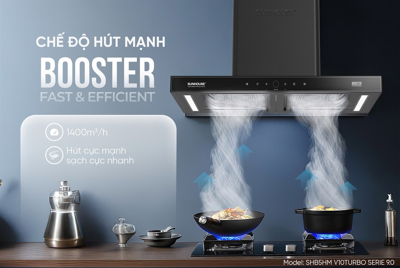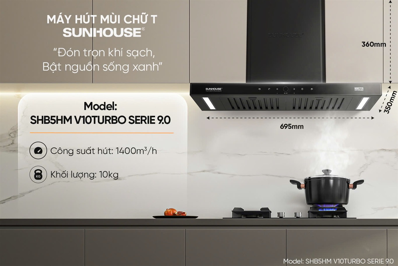 MÁY HÚT MÙI CHỮ T SUNHOUSE SHB5HM V10TURBO SERIE 9.0