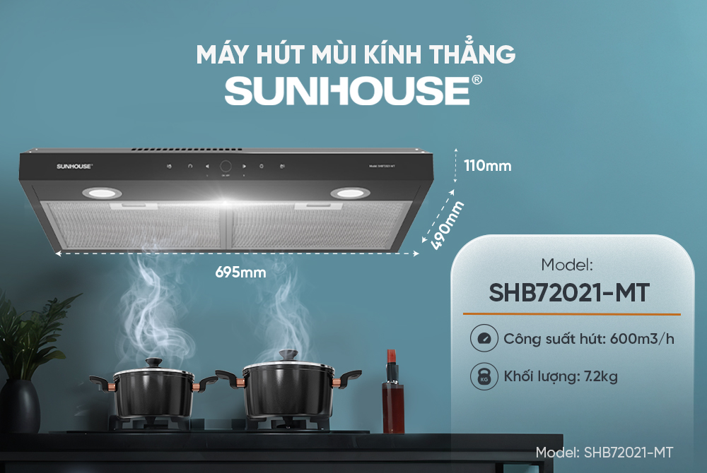 Với thiết kế hiện đại, công năng vượt trội và độ bền cao, máy hút mùi kính thẳng SUNHOUSE SHB72021-MT không chỉ lý tưởng cho căn bếp gia đình mà còn phù hợp để lắp đặt tại các nhà hàng, khách sạn... Đây chính là thiết bị gia dụng đáng tin cậy giúp mang đến một không gian bếp sạch mùi - sạch khói - sạch dầu mỡ.