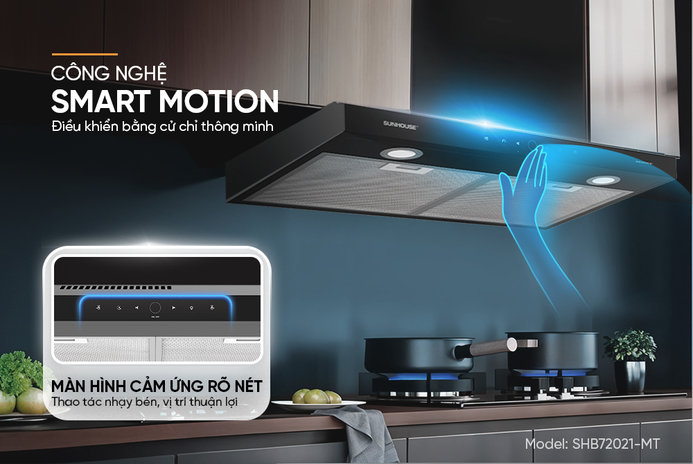 Với công nghệ cảm biến chuyển động Smart Motion, việc vận hành máy trở nên dễ dàng hơn bao giờ hết. Chỉ cần vẫy tay ngang qua bảng điều khiển, bạn có thể bật/tắt hoặc thay đổi tốc độ hút mà không cần chạm tay trực tiếp - tiện lợi và hợp vệ sinh, đặc biệt khi tay đang ướt hoặc bám dầu mỡ.