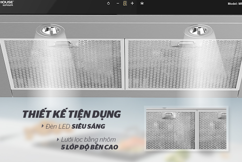 Motor và các linh kiện bên trong đảm bảo chất lượng sử dụng trong thời gian dài do tấm lưới lọc nhôm dày dặn chắn được hầu hết các loại tạp chất có thể gây hỏng máy bên trong. Hơn nữa thiết kế dễ dàng tháo rời giúp bạn dễ dàng vệ sinh lưới lọc thường xuyên. Bên cạnh đó là 2 đèn LED giúp cung cấp đủ ánh sáng cho người nội trợ nấu nướng chuẩn hơn trong điều kiện ánh sáng tốt.