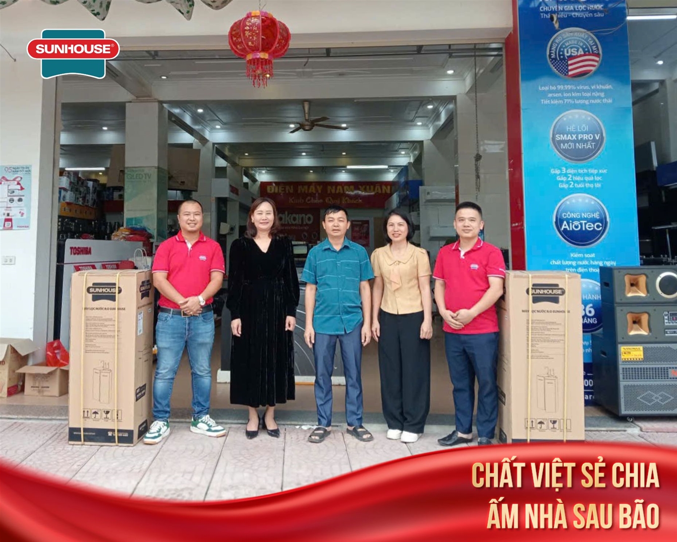 Sau bão lũ, nguồn nước sạch và an toàn luôn là vấn đề cấp thiết hàng đầu. Hiểu được điều đó, SUNHOUSE đã trao tặng máy lọc nước R.O cho nhiều trường học, cơ quan, giúp người dân có thể yên tâm sử dụng nguồn nước sạch trong sinh hoạt hằng ngày.