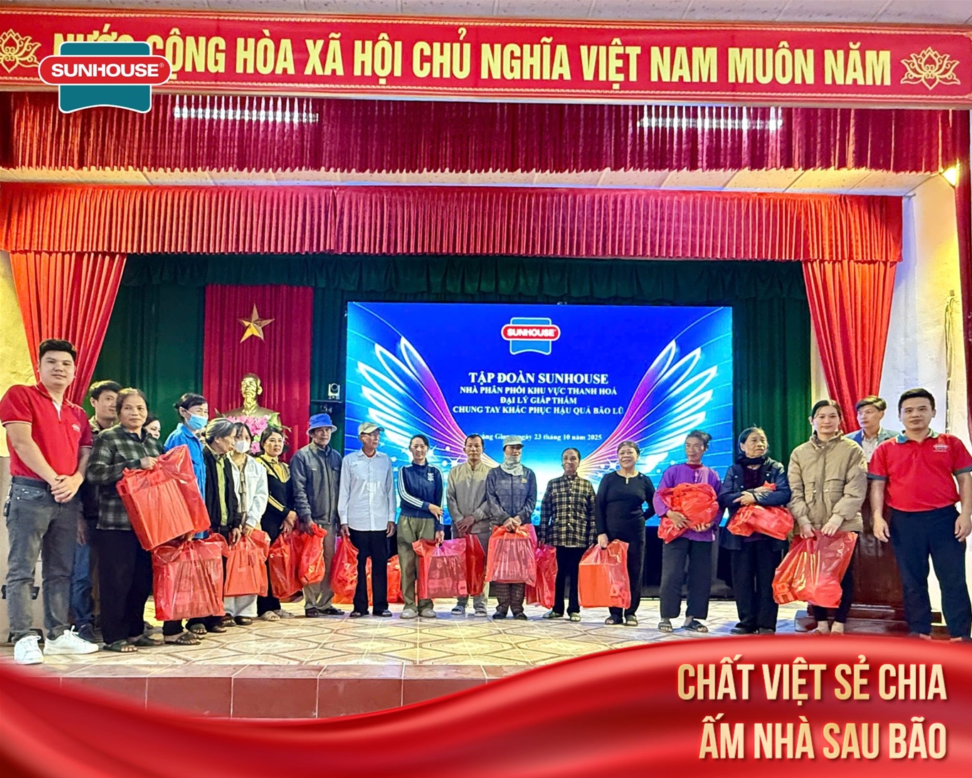 Hành trình sẻ chia này không chỉ mang lại những món quà thiết thực giúp bà con ổn định sinh hoạt sau thiên tai, mà còn thể hiện trách nhiệm xã hội và tinh thần tương thân tương ái, những giá trị mà SUNHOUSE luôn gìn giữ trong suốt hành trình phát triển.