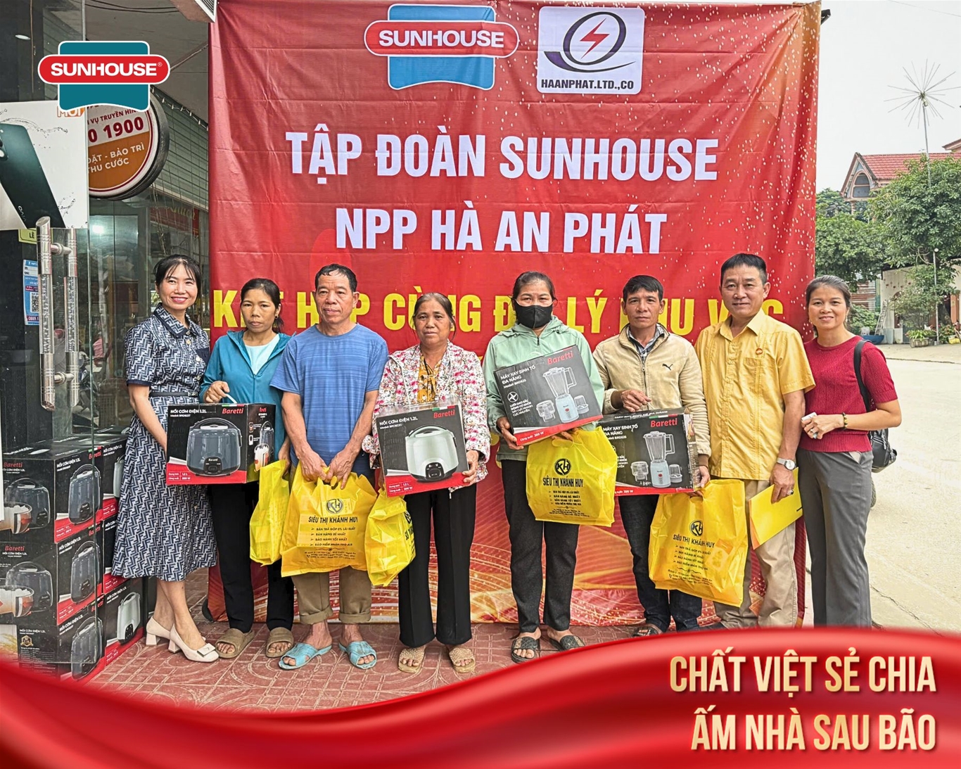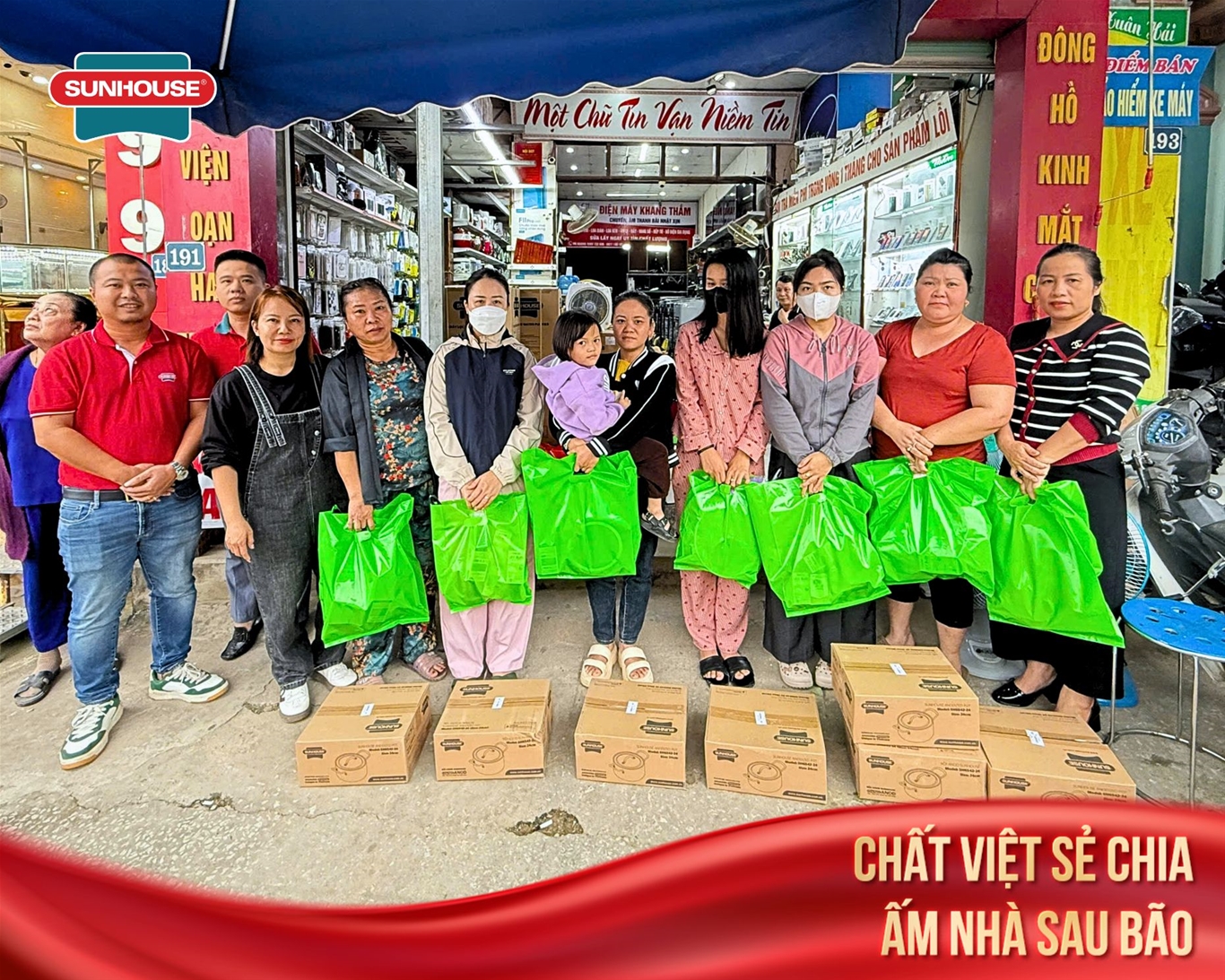 SUNHOUSE trao tặng nồi cơm điện đến từng hộ dân bị ảnh hưởng bởi bão lũ